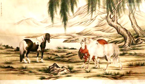 More than 40 well-known horse paintings from the ancient Tang Dynasty to modern times by Chinese art masters are on display.