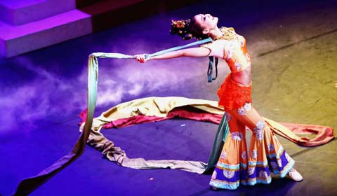 Dancers perform in the Chinese classic dance drama "Flower Rains along Silk Road" in London, capital of Britain, Jan 11, 2014.