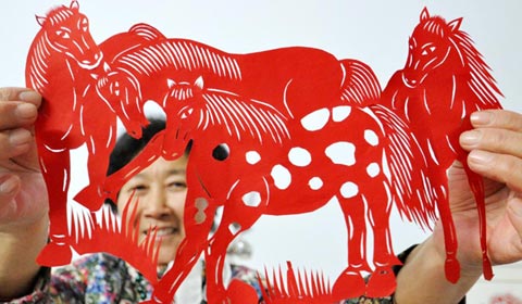 Folk artists create horse-themed paper cutting works to welcome the New Year, which is the Year of the Horse according to Chinese zodiac calendar.
