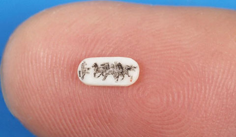 A miniature carving of the well-known painting "Eight Fine Horses" was created by Chinese artist Li Qici to celebrate the upcoming Year of the Horse.
