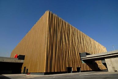 On the outside, the building looks like a giant gold bar. But when visitors approach the venue, they can see individual yellow-colored columns that are wavy and point to the sky. It gives people the feeling of movement and optimism.
