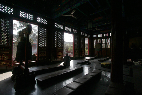 Monk in the sunset Location: Former street on the 7th South of Beijing's Xuanwu District Time: July 30,2006. Photographer: Sun Yuqing
