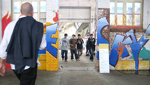 Visitors watch at the art festival at Factory 798, an art zone in northeast Beijing . [newsphoto]