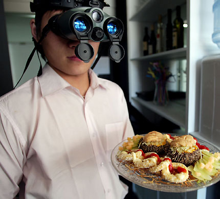Waiter works with night vision device - newsphoto