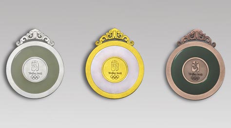 The medal for the Beijing 2008 Olympic Games is designed with inspiration coming from "bi", China's ancient jade piece inscribed with dragon pattern. The medals, made of gold and jade, symbolize nobility and virtue and are embodiment of traditional Chinese values of ethics and honor, sending forth strong Chinese flavor.