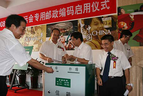 Following its launch at the Beijing Olympic Tower, the code will be used in future for all mailing services at the Olympic Family Hotel, Paralympic Family Hotel, Olympic Village and the main Olympic venues. The venues will include the National Stadium, National Indoor Stadium, the Olympic Village, the Main Press Center, National Aquatics Center, Digital Beijing Building, Olympic Sports Center Gymnasium, Olympic Sports Center Stadium, Ying Tung Natatorium, North Star Media Village, Huiyuan Media Village, etc.