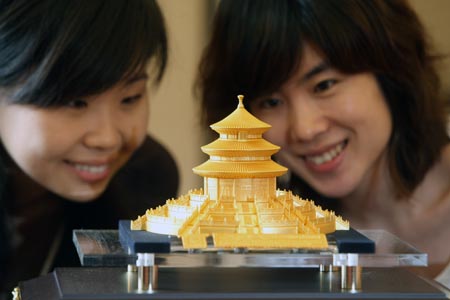 Aside from the pins, precious metal products have also been very popular. For the Olympic Games one-year countdown, numerous precious metal products will be released, including five pure gold Fuwa, a Ruyi piece of gold and silver, and good luck charms.