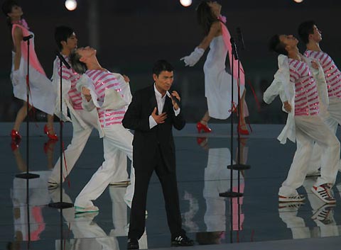 Hong Kong singer Andy Lau performs during the one-year countdown celebrations for the 29th Olympic Games in Tiananmen Square in Beijing August 8, 2007. [Reuters]