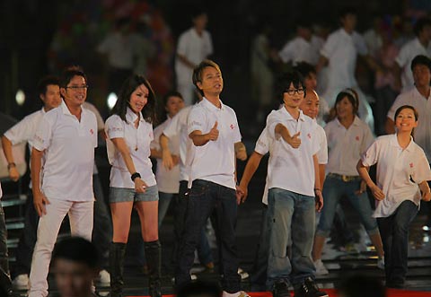 Chinese singers perform the song "We Are Ready" during the one-year countdown celebrations for the 29th Olympic Games in Tiananmen Square in Beijing August 8, 2007. [BOCOG]