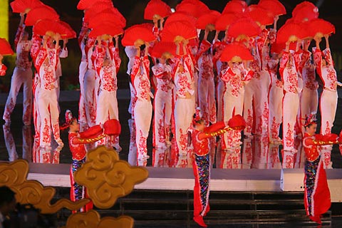 Dancers perform during the one-year countdown celebrations for the 29th Olympic Games in Tiananmen Square in Beijing August 8, 2007. [BOCOG]