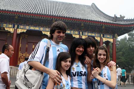 The Argentine family, online namethe "BOCHAMDQ", pose for a photo in front of the Summber Palace in Beijing, August 7, 2007. Ten families, five from China, and five from aboard, have won a 12-day tour of China from an "Olympic Families Tour Beijing" campain, organized by Beijing Olympic Committe (BOCOG), on the occasion of the one-year countdown to the Beijing 2008 Olympic Games.