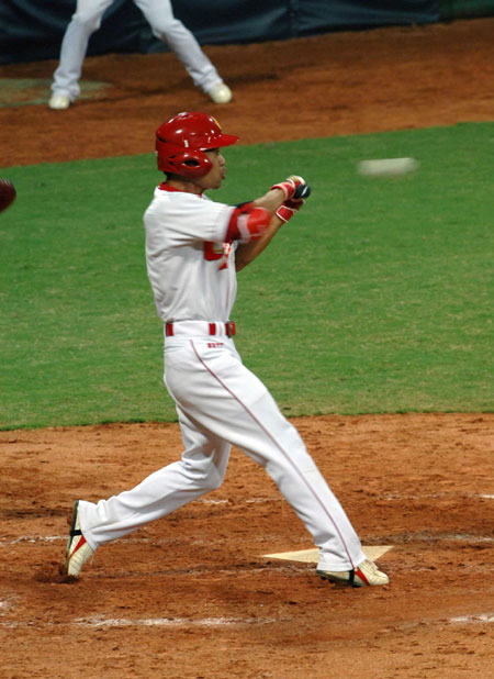 Chinese hitter Sun Lingfeng missed a golden chance to take the lead for China in the second bottom when the host team made full-loaded bases with two singles.