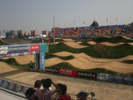 A general view of Laoshan Bicycle Moto Cross (BMX) Venue, the venue for BMX of Beijing Olympic Games. [chinadaily.com.cn] |