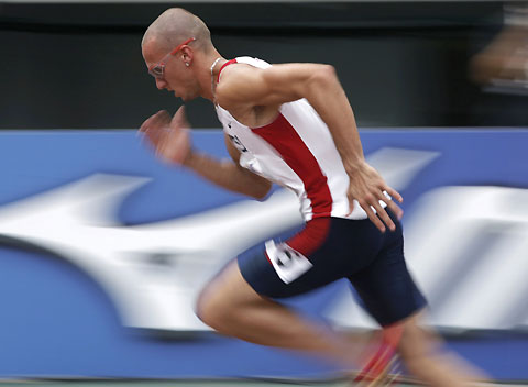Jeremy Wariner of the U.S. races in the men's 400 metres heats at the 11th IAAF World Athletics Championship in Osaka August 28, 2007. [Reuters]