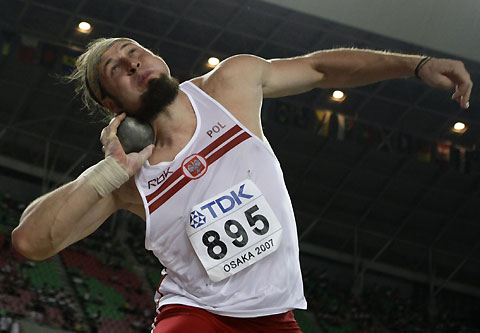 Tomasz Majewski of Poland competes in the men's shot put final at the 11th IAAF World Athletics Championship in Osaka August 25, 2007. [Reuters]