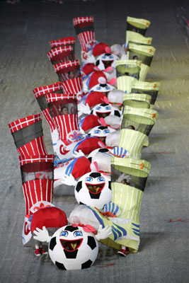 Performers take part in the opening ceremony for the 2007 FIFA Women's World Cup before the match between Germany and Argentina at the Hongkou Football Stadium in Shanghai, September 10, 2007. [Reuters]