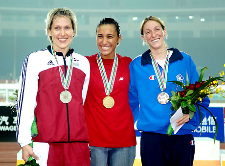 Gold medallists of the women's Modern Pentathlon, Aya Medany of Egypt (C), Elen Rublevska from Latvia (L) and Sara Bertoli of Egypt (R) pose during the prize presentation at the the 2007 Modern Pentathlon Final in Beijing, September 16, 2007. [Xinhua]