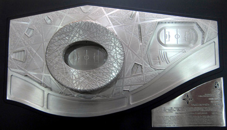 A model of China's National Stadium, dubbed the Bird's Nest is