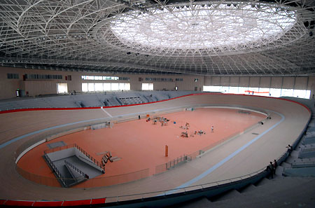An interior view of the newly-built Laoshan Velodrome, the cycling venue for the 2008 Games, is seen in this photo, August 27, 2007 in Bejing. As China's first 24-hour indoor wooden cycling track, Laoshan Velodrome is ready for tests during the upcoming Union cyclist International (UCI) next month. [Xinhua]