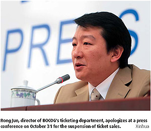 On the day after the second round of ticket sales was suspended due to unmanageable domestic demand, BOCOG issued an apology to the public. The top ticketing officer apologized again the next day at a press conference for having "underestimated the situation and enthusiasm of people" and not having an effective contingency plan.