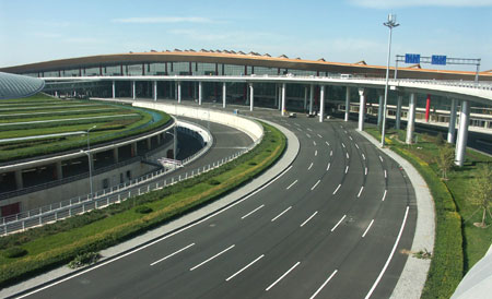 An overpass leading to the newly-built Terminal 3 (T3) of Beijing Capital International Airport (BCIA) is shown in this photograph, November 21, 2007. T3A, the major building of Terminal 3, is now completed. The new terminal will serve Olympic and Paralympic chartered flights during the Games. [Xinhua] |