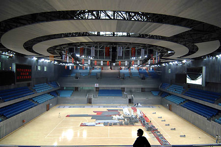 An interior view of the newly built Beijing University Gymnasium, the venue for table tennis events for the 2008 Olympic Games, in this photo taken December 2, 2007. The Gymnasium, the world's first gym specially designed for table tennis competitions, will host the 2007 Table Tennis ITTF Pro-Tour Grand Finals December 13-16, 2007. [Xinhua]