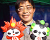 Two teenagers watch as 74-year-old Shen Yuanyan, a hearing and speech impaired resident from South China's Hangzhou city, folds Fuwa - the Olympic mascots for 2008 - with colorful paper on December 28, 2007. Shen spent more than a month folding 10040 of the figures with each using exactly 2008 pieces of paper. [Xinhua]