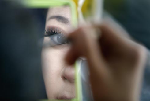 A member of the Beijing Xueming Art Group prepares her make-up ahead of the opening ceremony of the Daxing Farmers Arts Festival on the outskirts of Beijing January 17, 2008. The festival is a part of activities to celebrate the upcoming 200-day countdown to the Beijing Olympic Games. Walking and performing on stilts is one of the most famous traditional Chinese arts and this group has members between 13 and 26 years old, who began to take up stilt performance since 2005. [Agencies]