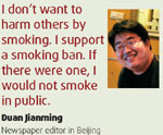 "It is a Herculean effort," he said. "We hope to use Beijing as a springboard before attempting to rewrite the law on a national level and make for fewer smoking-friendly areas."