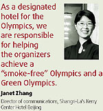 Similar restrictions are being reviewed by Beijing Games co-host cities including Shanghai, Qingdao and Shenyang. No tobacco promotion is allowed in all six host cities during the Olympics. The country is also mulling putting graghic warnings on cigarette packages by 2009, comparable to the horrifying warnings used in Thailand.