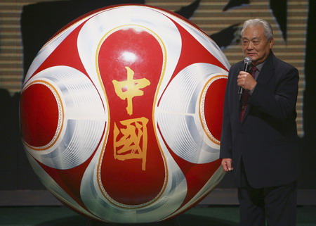 Former president of the Football Association of China Nian Weisi introduces the official ball for the 2008 Beijing Olympics football match during its launching ceremony in Beijing January 26, 2008. Football designed for the Beijing 2008 Olympic Games was launched in Beijing on Sunday by adidas, an official partner of the Beijing 2008 Olympic Games. Featuring Chinese characters 'China' written by Nian, the ball will be used in Olympic football preliminaries in Tianjin, Shanghai, Shenyang and Qinhuangdao, and the Olympic finals in the Olympic City of Beijing, according to the Beijing Organizing Committee for the Games of the XXIX Olympiad. The Chinese characters on the ball read as "China". [Agencies]