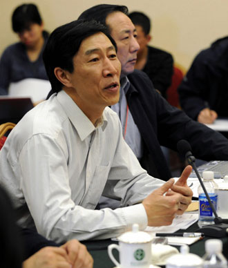 Yang Hua, president of Beijing Sport University and member of the 11th National Committee of the Chinese People's Political Consultative Conference (CPPCC), speaks during a group discussion at the onging CPPCC and NPC sessions in Beijing, March 4, 2008. Yang expects Chinese culture will add new elements to the Olympic Games, citing Xinhua news agency. [Xinhua]