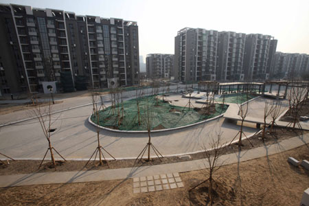 A view from a window of a unit in the Olympic Village is seen in this photo taken on March 5, 2008. The Organizing Committee for the Games of the 29th Olympiad (BOCOG) unveiled the village to the press on Wednesday. [Xinhua]