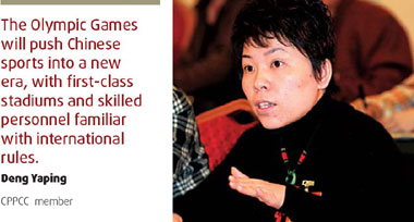 "The Olympic Games will push Chinese sports into a new era, with first-class stadiums and skilled personnel familiar with international rules," she added.