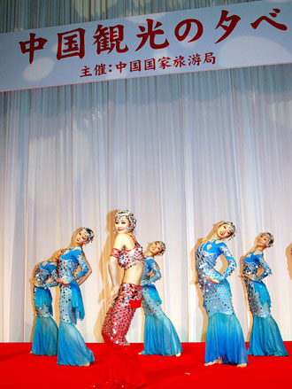 Chinese artists perform a traditional dance to promote "Visit China in Olympic Year", in Tokyo, Japan, March 17, 2008. Some 300 Japanese attend the event. [Xinhua]