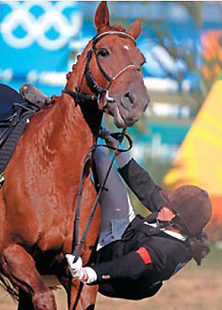 A rider fell doown from the house at the 2004 Athens Olympic Games. [Agencies]