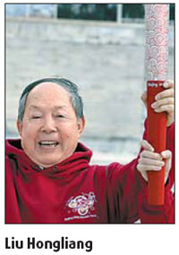 Liu Hongliang was selected by Coca Cola, a major sponsor of the Beijing Olympic torch relay, as one of nine Chinese torchbearers on the Greece leg after the flame was lit at the ancient site of Olympia.