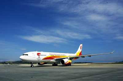 The Olympic Torch plane arrives in Athens of Greece on March 29, 2008. [Xinhua]