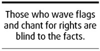 Those who wave flags and chant for rights are deaf to our voices and blind to these facts.
