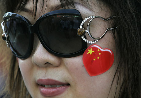 An onlookers waits for the Olympic torch relay on a main street at Shenzhen in southern China's Guangdong province May 8, 2008. On the same day, the Olympic flame for the first time in history reached the top of the world, Mount Qomolangma at 8,8844 meter. [Agencies]
