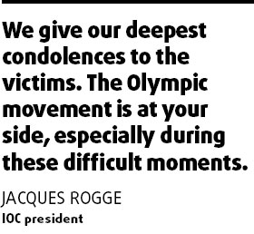 "We give our deepest condolences to the victims. The Olympic movement is at your side, especially during these difficult moments," IOC President Jacques Rogge said in a letter to Chinese President Hu Jintao.