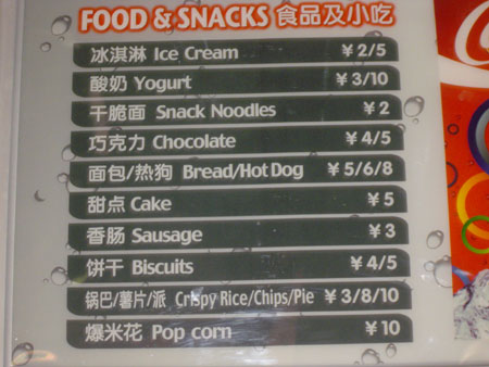 A picture taken on May 22, 2008 shows the prices of the food and drinks sold in the National Olympic Stadium, also known as the Bird's Nest. [chinadaily.com.cn]