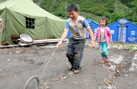 Children play in quake-hit areas