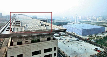 The highlighted part of the picture shows the courtyard houses on the roof of Pangu Plaza. [China Daily]