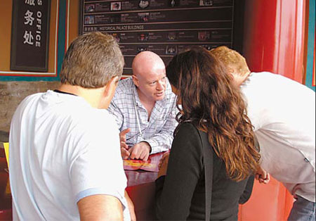 Niall Lawless (center) explains the layout of the Forbidden City to tourists. [Courtesy of Niall Lawless]