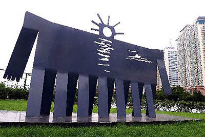 Photo taken on July 30, 2008 shows a sculpture at the Olympic co-host city Qingdao, east China. The sailing events for the Games of the XXIX Olympiad will be held within Qingdao International Sailing Center, the five water areas outside Fushan Bay. A unique blend of sea and mountains makes Qingdao a well-known summer resort. With an average temperature ranging from 20-28 degrees celsius, the period from July through September is the most agreeable season for the tour. [Xinhua]