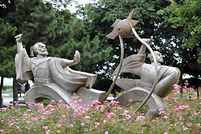 Photo taken on July 30, 2008 shows a sculpture at the Olympic co-host city Qingdao, east China. The sailing events for the Games of the XXIX Olympiad will be held within Qingdao International Sailing Center, the five water areas outside Fushan Bay. A unique blend of sea and mountains makes Qingdao a well-known summer resort. With an average temperature ranging from 20-28 degrees celsius, the period from July through September is the most agreeable season for the tour. [Xinhua]