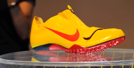The picture presents the running shoe Chinese 110m hurdler Liu Xiang will wear during the Beijing Olympic Games, in Beijing, July 31, 2008. Liu's running shoes and jersey were unveiled on Thursday. [Xinhua]
