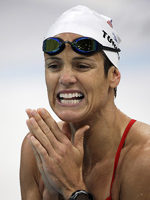 Dara Torres of the US attends swimming practice at the National Aquatics Centre, also known as the Water Cube, ahead of the Beijing 2008 Olympic Games August 6, 2008. [Agencies]