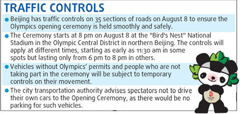 A number of transport restrictions will be in force today in some parts of Beijing ahead of the opening ceremony of the Olympic Games.